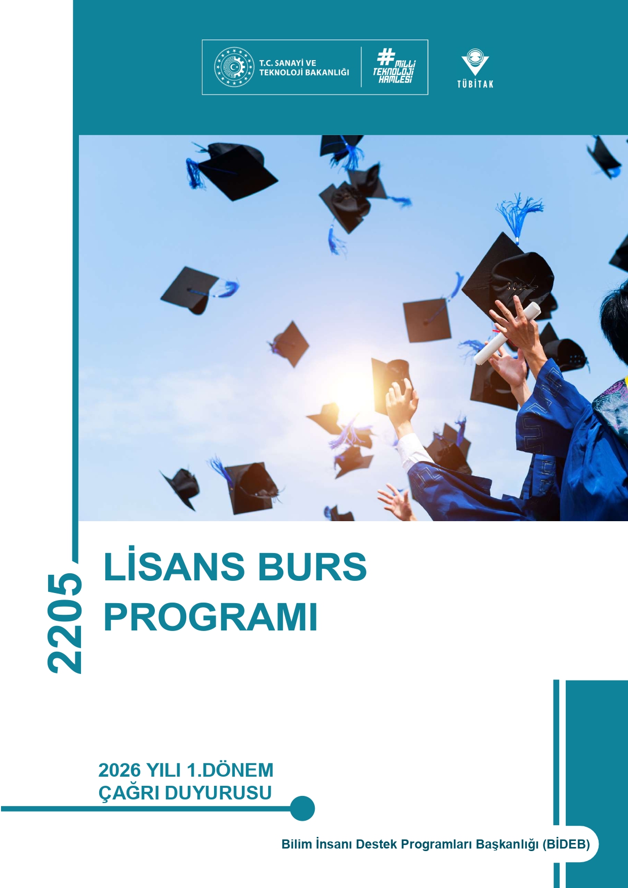 DUYURU (08.01.2026): BİDEB 2205-Lisans Burs Programı 2025 yılı 2. dönem başvuru sonuçları BİDEB Başvuru ve İzleme Sistemi (e-bideb) üzerinden açıklanmıştır. Başvuru sahipleri, başvuru durumları ile ilgili sonucu, BİDEB Başvuru ve İzleme Sisteminden (ebideb.tubitak.gov.tr) kullanıcı girişi yaparak “Başvurularım” kısmından erişebilir.