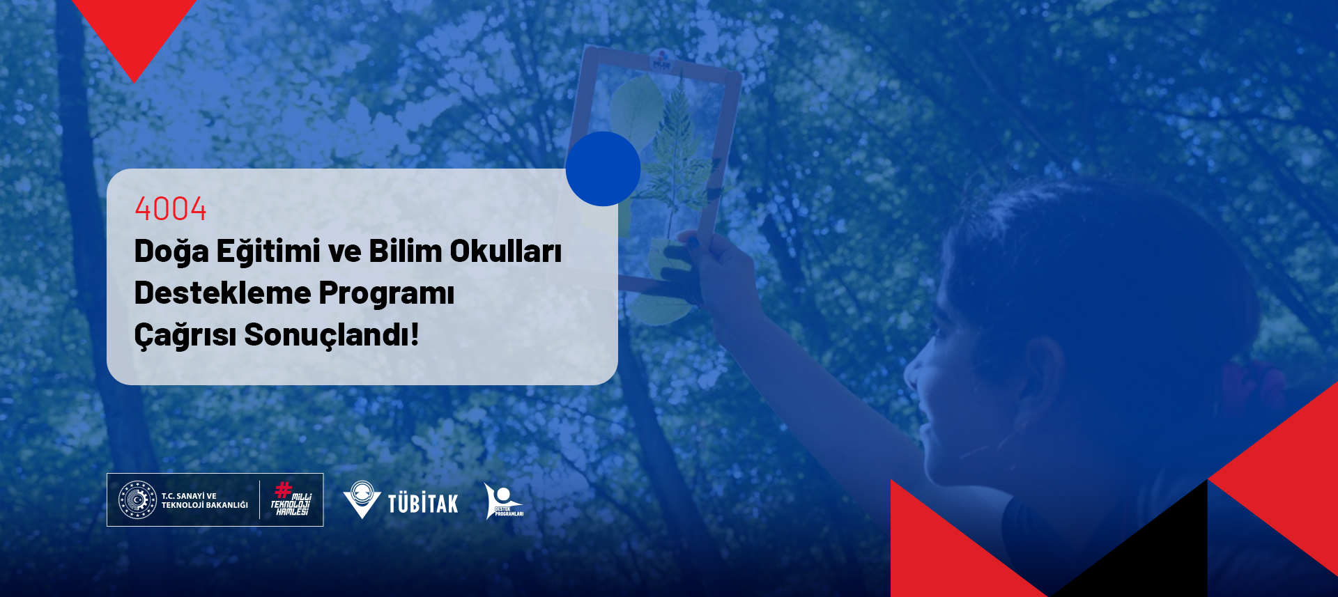 4004 - Doğa Eğitimi ve Bilim Okulları Destekleme Programı; bilginin toplum ile buluşturulmasını ve yaygınlaştırılmasını, bilginin mümkün olduğunca görselleştirilerek, etkileşimli uygulamalarla anlaşılır bir biçimde kazandırılmasını amaçlamaktadır. Program kapsamındaki projelerde; katılımcıların bilimsel olguları fark etmeleri sağlanarak, merak duygularının, araştırma, sorgulama ve öğrenme isteklerinin teşvik edilmesi hedeflenmektedir.