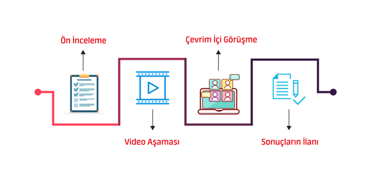 Değerlendirme süreci ön inceleme, video ve çevrim içi mülakat olmak üzere 3 (üç) aşamadan oluşur.