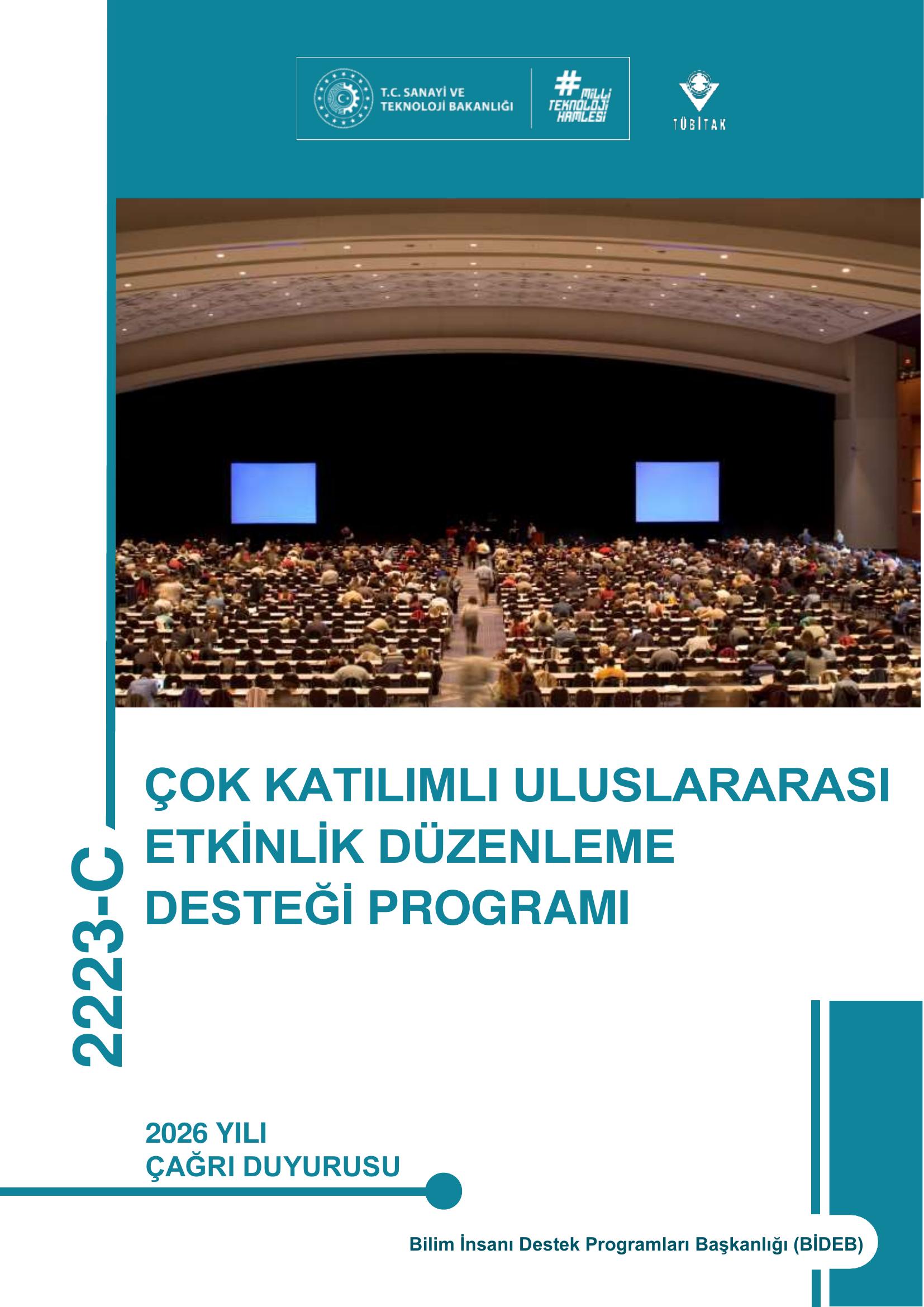 2223-C Çok Katılımlı Uluslararası Etkinlik Düzenleme Desteği Programı 2026 yılı Çağrı Duyurusu ve Çağrı Takvimi güncellenmiştir. Program internet sayfasından güncel Çağrı Duyurusu ve Çağrı Takvimine ulaşabilirsiniz.