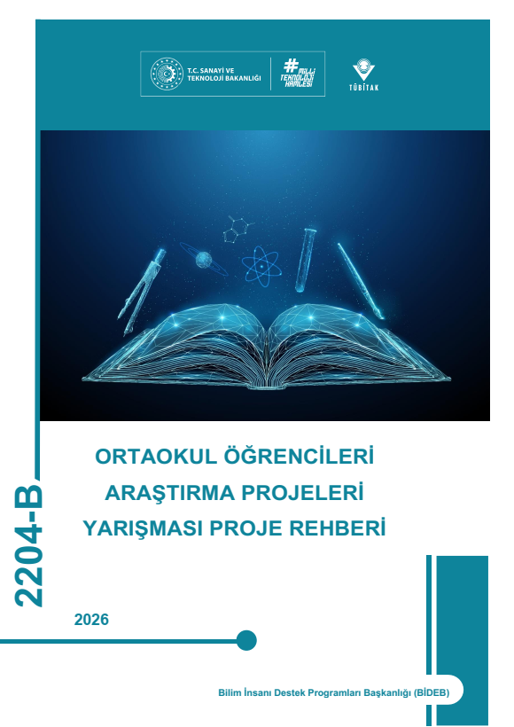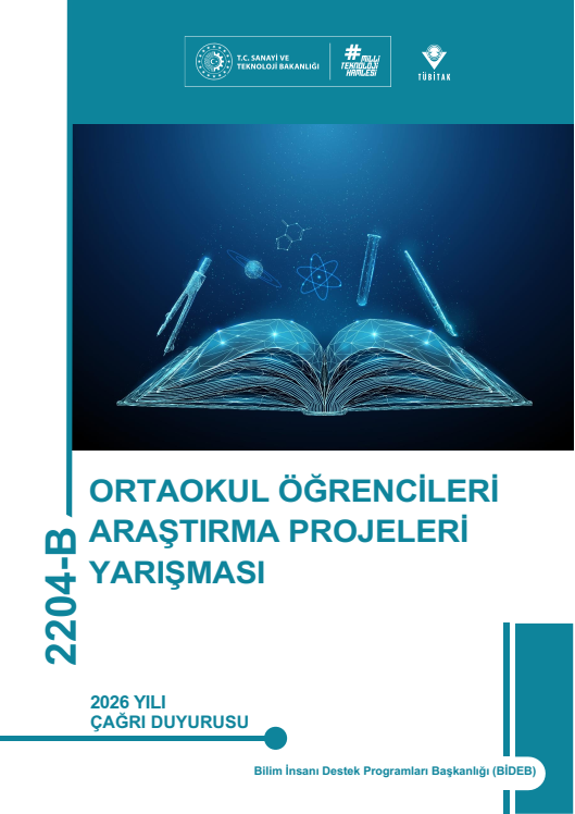 TÜBİTAK Bilim İnsanı Destek Programları Başkanlığı (BİDEB) tarafından ortaokul öğrenimine devam etmekte olan öğrencileri temel, sosyal ve uygulamalı bilim alanlarında çalışmalar yapmaya teşvik etmek, çalışmalarını yönlendirmek ve mevcut bilimsel çalışmalarının gelişimine katkı sağlamak amacıyla düzenlenen 2204-B Ortaokul Öğrencileri Araştırma Projeleri Yarışması’nın 2025-2026 dönemine ilişkin Çağrı Duyurusu ve Proje Rehberi yayınlanmıştır.