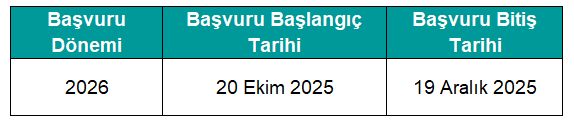 Başvuru, ilgili dönemin son başvuru tarihi (19 Aralık 2025) saat 17:30'a kadar yapılmalıdır. Belirtilen saatte sistem otomatik olarak kapanacağından başvuru işlemini sonlandırmak mümkün olmayacaktır.